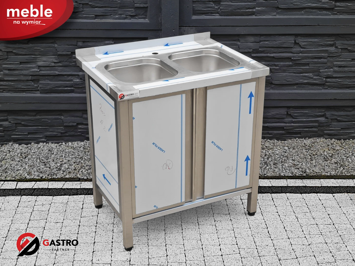 Zlew gastronomiczny 2 komorowy z szafką 80x60x85 cm